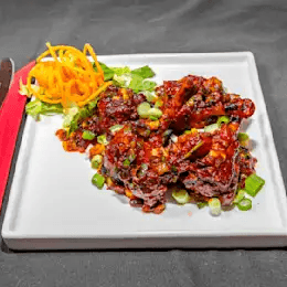 Spicy. Crispy wings tossed with Indian spices and chutneys.
